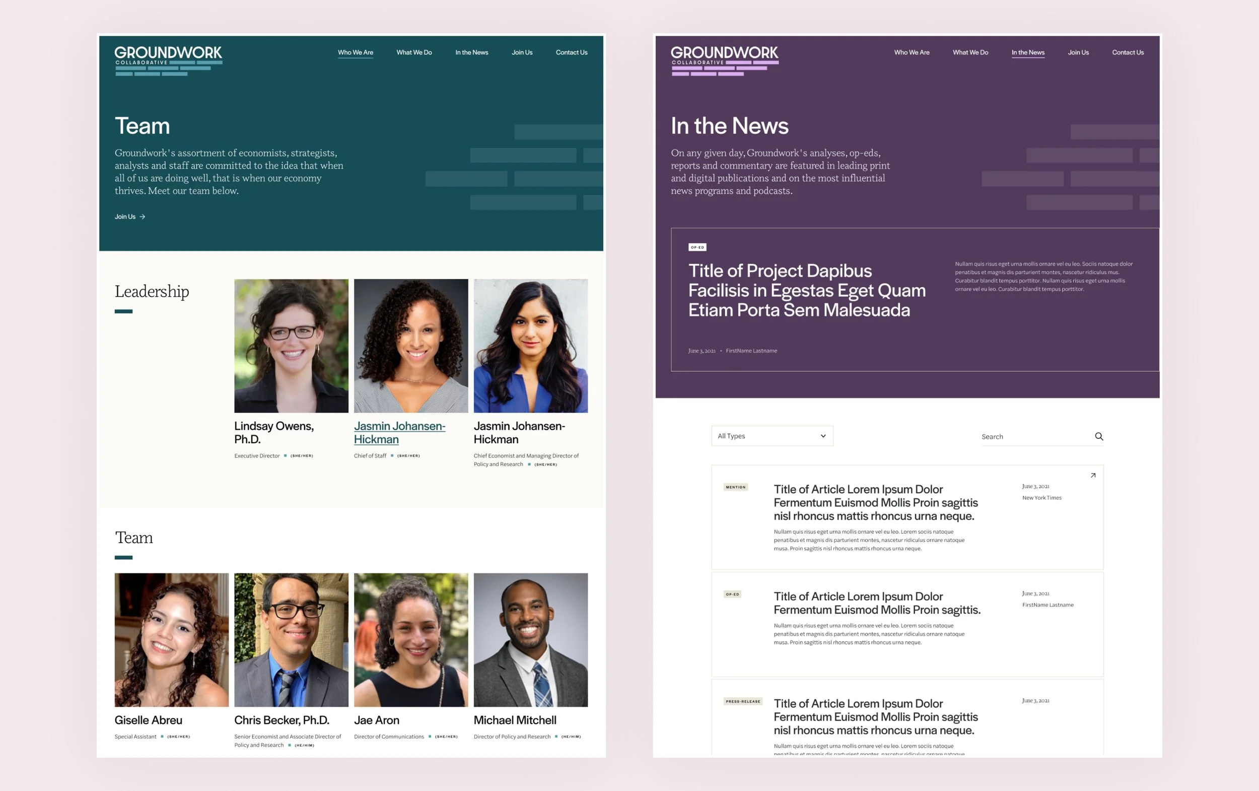 Groundwork Collaborative (new site is live) needed to tell a better story of what they do as a think tank organization. We came up with an editorial UI design system that conveys the data and research driven nature of their work.